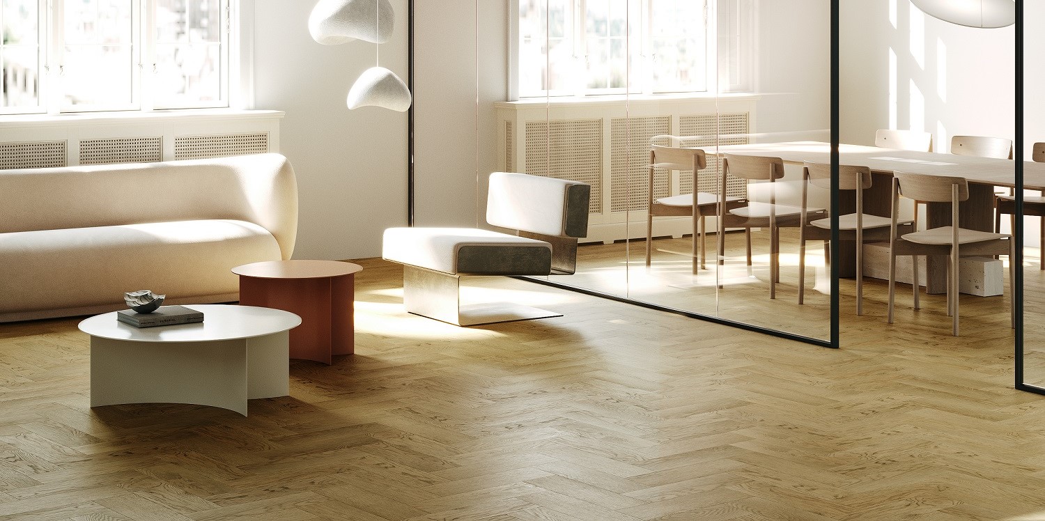 Коллекция FARGO Herringbone — это плашки размером 40 на 10 см — самый популярный и любимый дизайнерами интерьеров размер.