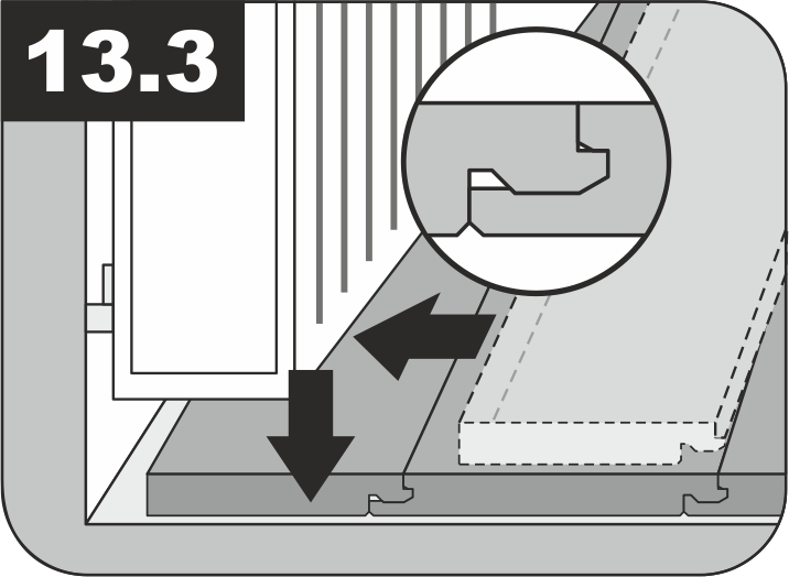 7.4.1 Плашки следующего ряда соединяются сначала по короткой стороне. После этого их нужно соединять по длинной стороне с предыдущим рядом.