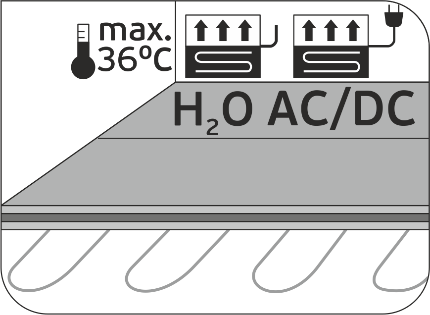 3.4 При использовании электрической системы тёплого пола мощность нагрева не должна превышать 150 Вт/м2. При использовании водяной системы тёплого пола температура подачи теплоносителя не должна превышать +36°C.