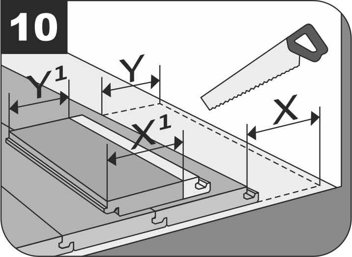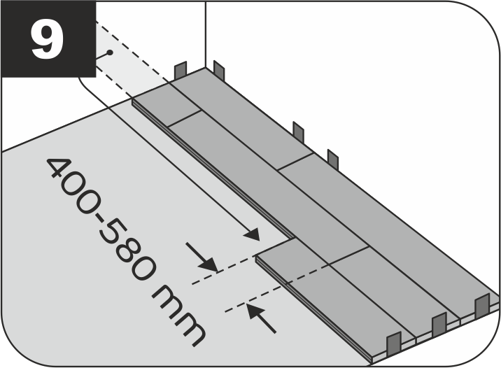 7.4.7 Возможно, придётся обрезать последний ряд – для более качественной укладки измеряйте ширину элемента с двух сторон, учитывая деформационный зазор 8 мм.
