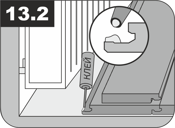 8.7 В случае установки очень тяжелой мебели (кухонные острова/шкафы и т.п.) примените клеевой способ укладки на всей площади до ближайшего технологического разрыва.